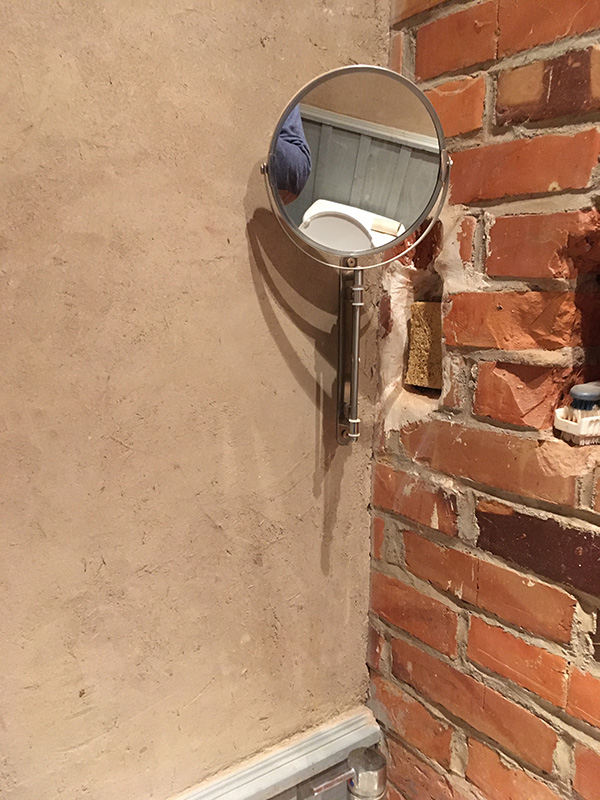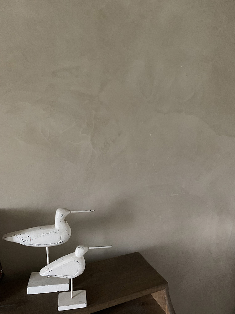 En cas d’accros ou de tâches d’eau, il suffit de remouiller localement et de nouveau lisser et serrer à l’aide d’un plâtoir la surface. En cas de fort trafic avec des risques que l’enduit soit touché, il est possible d’appliquer une huile dure naturelle sur celle-ci pour éviter les traces de doigts ou de mains.